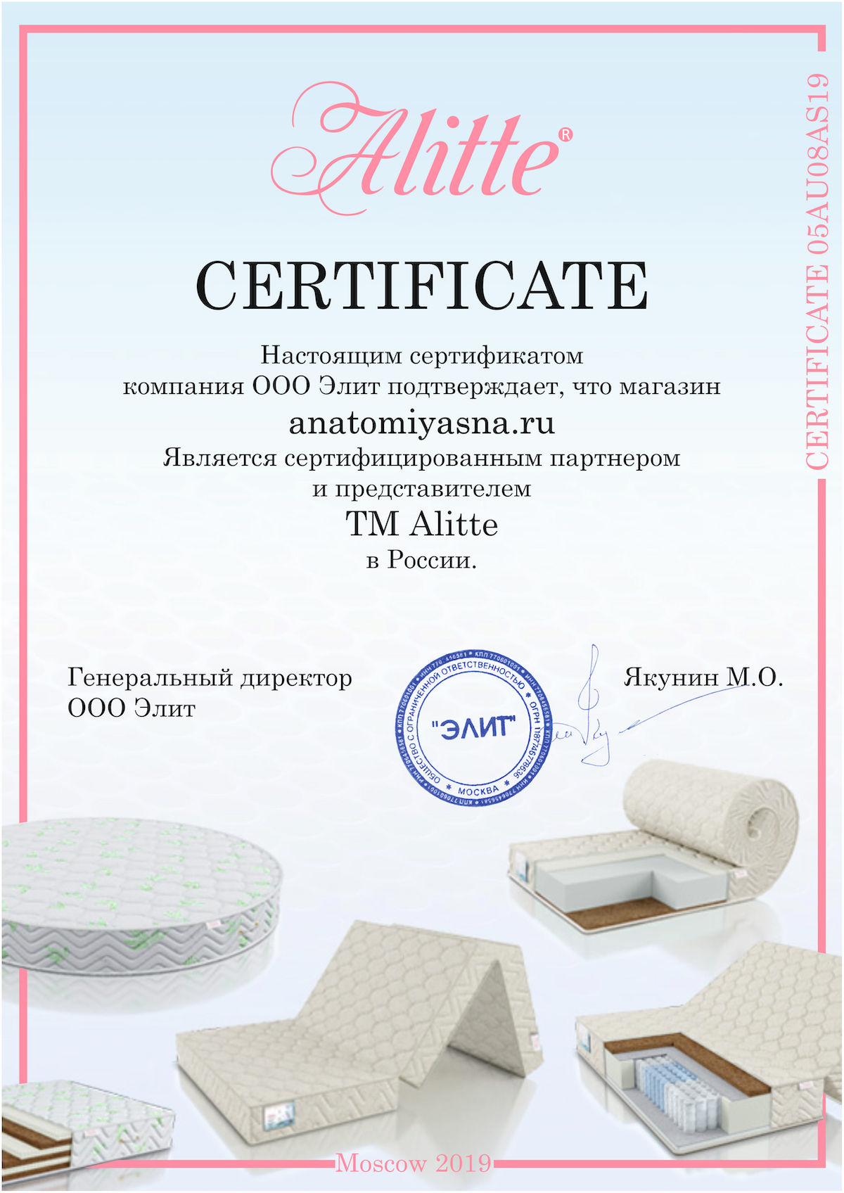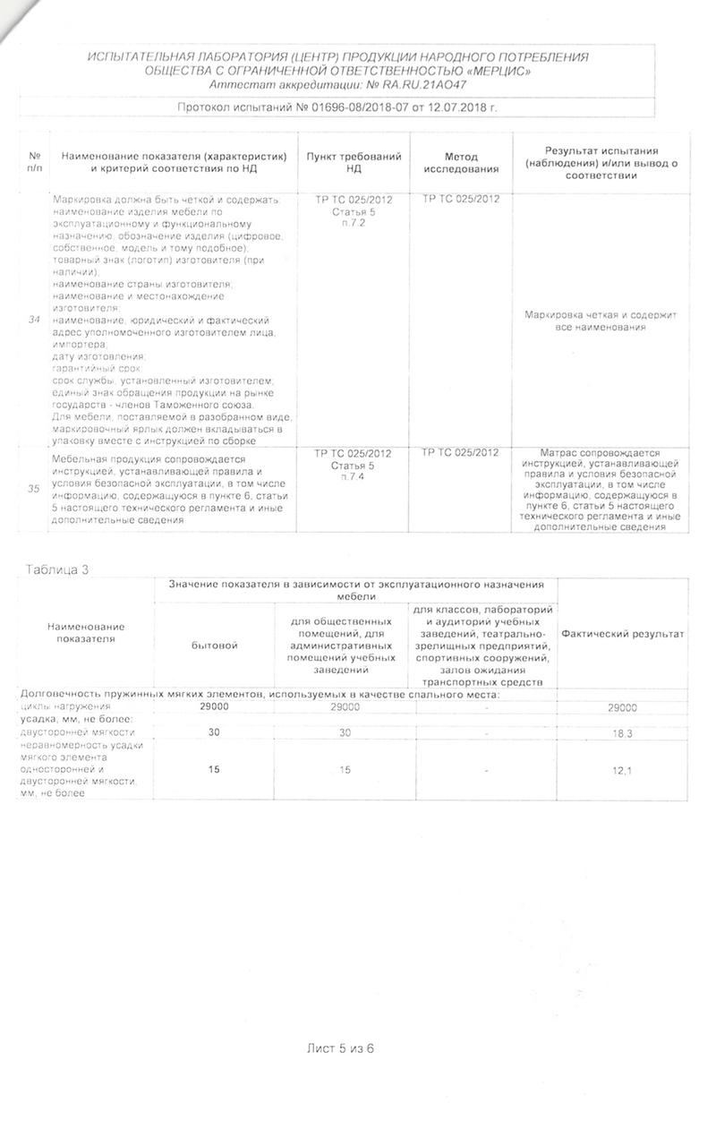 Гарантийные сроки от 18 месяцев до 60 месяцев, с даты, которая указана в накладной, в зависимости от модели матраса